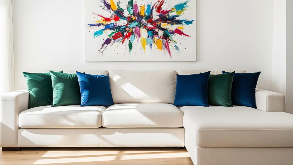 Móveis brancos proporcionam um visual minimalista, clean e moderno. Sofás, mesas e cadeiras nessa cor podem se tornar peças-chave na decoração da sala de sua casa ou do seu quarto. Adicione almofadas, cortinas e tapetes em outras cores para complementar o ambiente. Para um toque mais ousado, experimente tons mais fortes, como vermelho, amarelo, azul-marinho ou verde-oliva. Já para um visual mais clássico e elegante, cores neutras, como cinza, bege ou areia são as mais indicadas.
