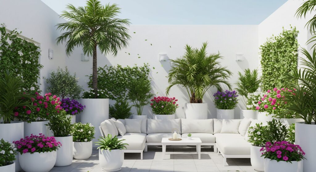 No jardim, na varanda de casa ou de apartamento, usar a Cloud Dancer em móveis de exterior, em ferro, madeira, plástico ou mesmo outro tipo de material vai tornar o espaço relaxante e convidativo. Vasos brancos dão um toque de charme combinando com o verde das plantas em um contraste vibrante e cheio de frescor.