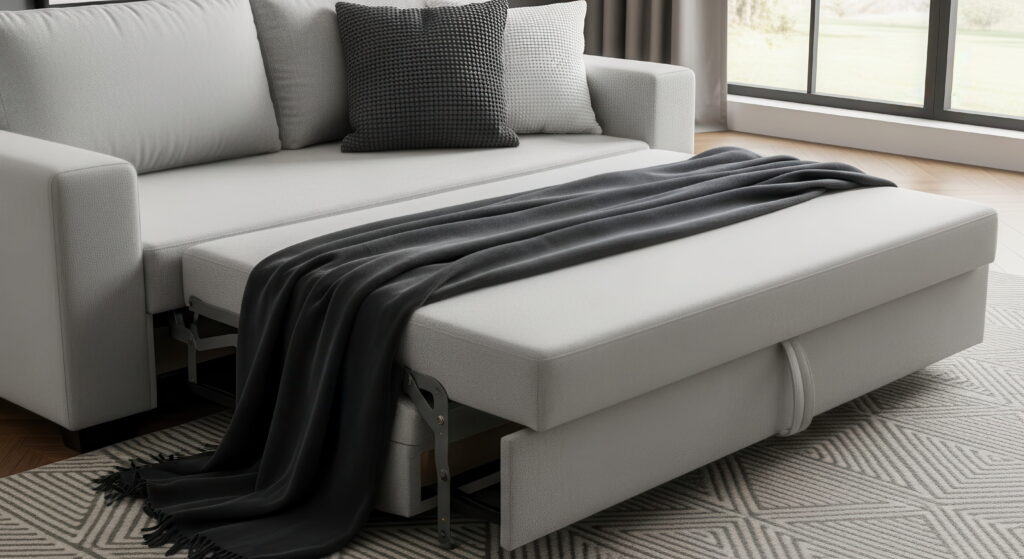 Um sofá-cama é um móvel versátil que oferece conforto e funcionalidade. Durante o dia, ele serve como um sofá aconchegante e, à noite, se transforma em uma cama confortável. É uma solução ideal para pequenos apartamentos, permitindo ter um espaço de estar e uma área de dormir sem precisar de um quarto extra. Modelos com armazenamento embutido, na parte de baixo, são ótimos para guardar roupas de cama, facilitando a organização.